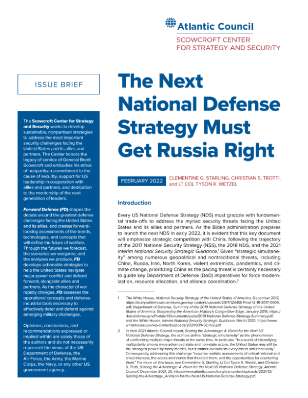 【大西洋理事会】【202202】下一个国防战略必须正确对待俄罗斯-15页 行业研究