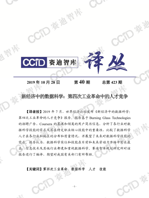 【世界经济论坛】【201907】新经济中的数据科学:第四次工业革命中的人才竞争-23页 行业研究