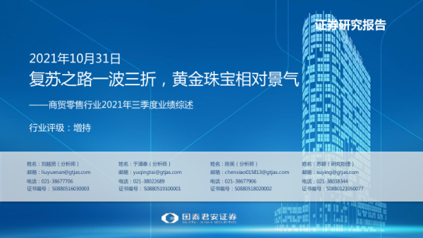 【国泰君安证券】【20211031】商贸零售行业2021年三季度业绩综述:复苏之路一波三折,黄金珠宝相对景气-49页 行业研究