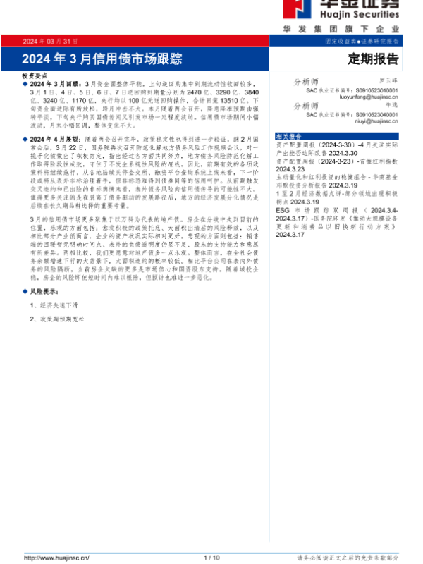 【华金证券】【20240331】2024年3月信用债市场跟踪-10页 行业研究