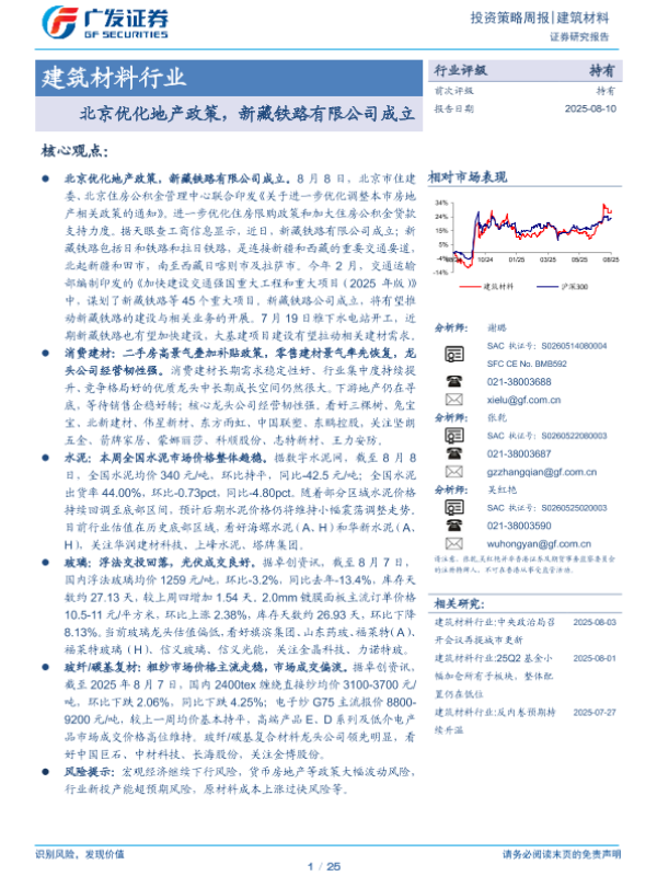 【广发证券】【20250810】北京优化地产政策,新藏铁路有限公司成立-25页 证券期货研究报告