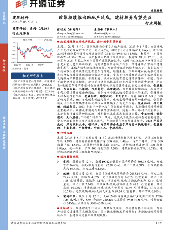 【开源证券】【20230820】建筑材料行业周报:政策持续推出助地产筑底,建材投资有望受益-23页 行业研究