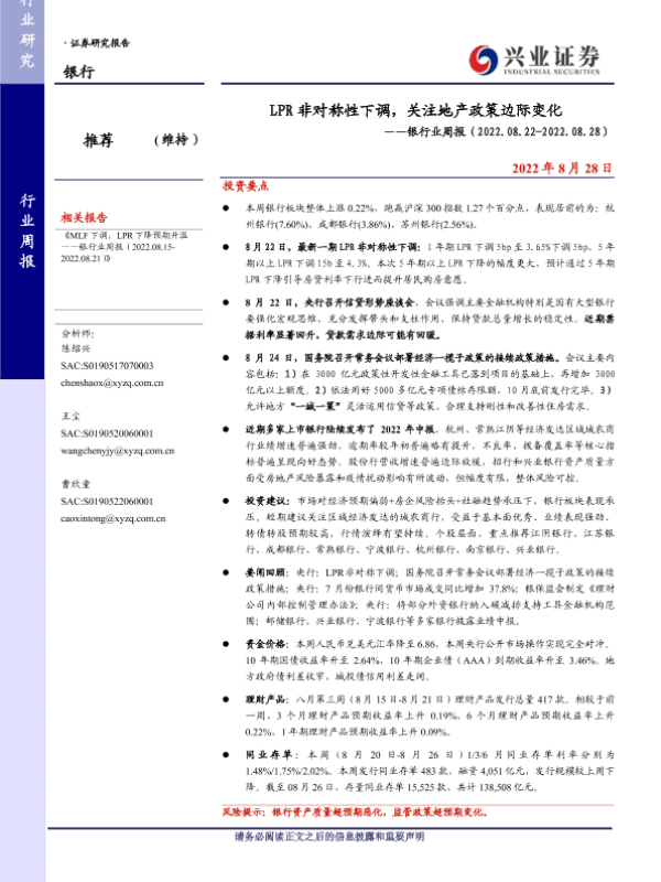 【兴业证券】【20220828】LPR非对称性下调,关注地产政策边际变化-16页 行业研究