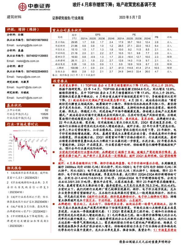 【中泰证券】【20230507】玻纤4月库存继续下降;地产政策宽松基调不变-24页 行业研究