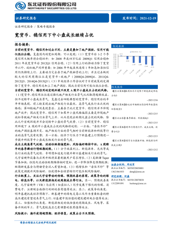 【东北证券】【20211219】策略专题报告:宽货币、稳信用下中小盘成长继续占优-29页 行业研究