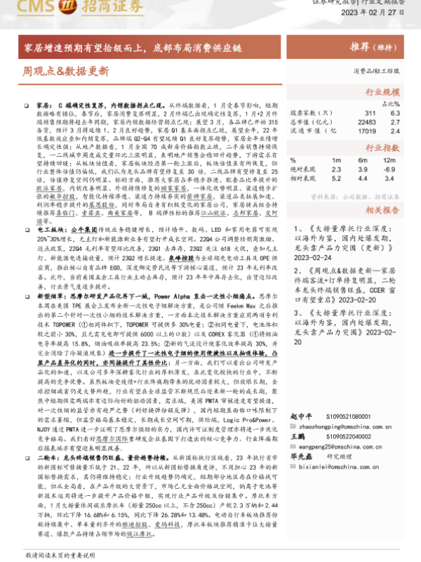 【海通证券】【20230227】轻工纺服周观点&数据更新:家居增速预期有望拾级而上,底部布局消费供应链-22页 行业研究