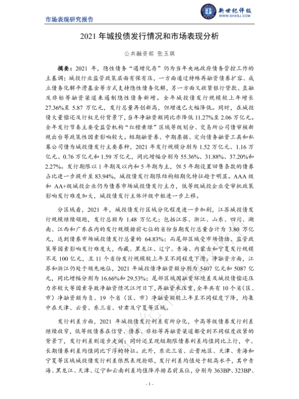 【新世纪评级】【20210101】2021年城投债发行情况和市场表现分析-26页 行业研究