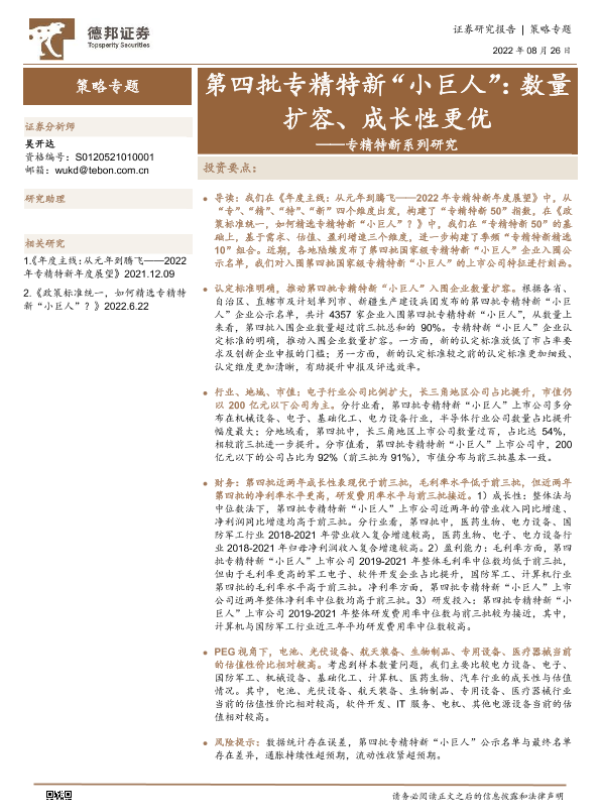 【德邦证券】【20220826】专精特新系列研究:第四批专精特新“小巨人”,数量扩容、成长性更优-19页 行业研究