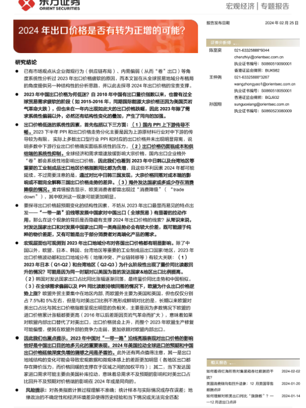 【东方证券】【20240225】2024年出口价格是否有转为正增的可能?-18页 行业研究