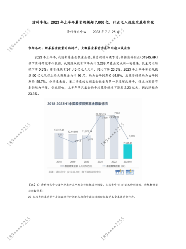 【清科研究中心】【20230725】清科季报:2023年上半年募资规模超7,000亿,行业迈入规范发展新阶段-8页 行业研究