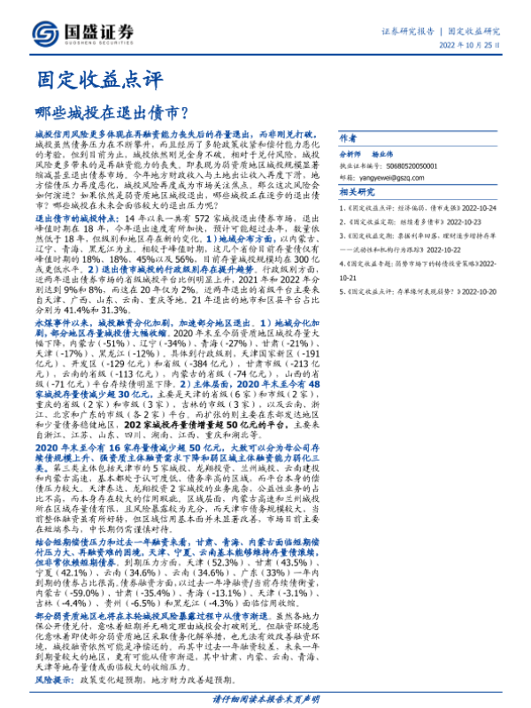 【国盛证券】【20221025】固定收益点评:哪些城投在退出债市?-19页 行业研究