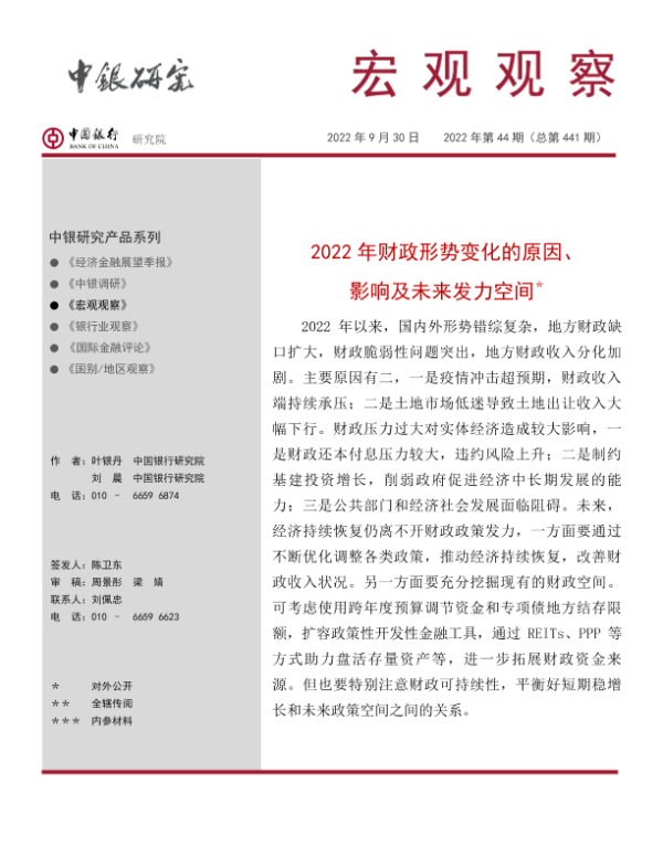 【中国银行研究院】【20220930】2022年财政形势变化的原因、影响及未来发力空间-17页 行业研究