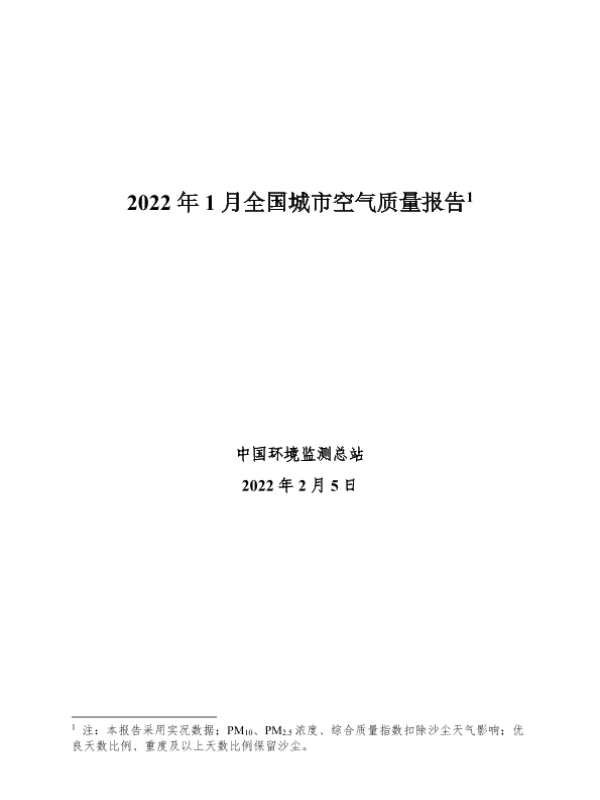 【中华人民共和国生态环境部】【20220205】2022年1月全国城市空气质量报告-30页 行业研究
