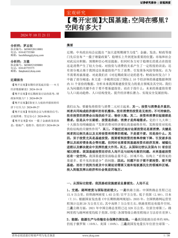 【粤开证券】【20241021】【粤开宏观】大国基建:空间在哪里?空间有多大?-30页 宏观策略