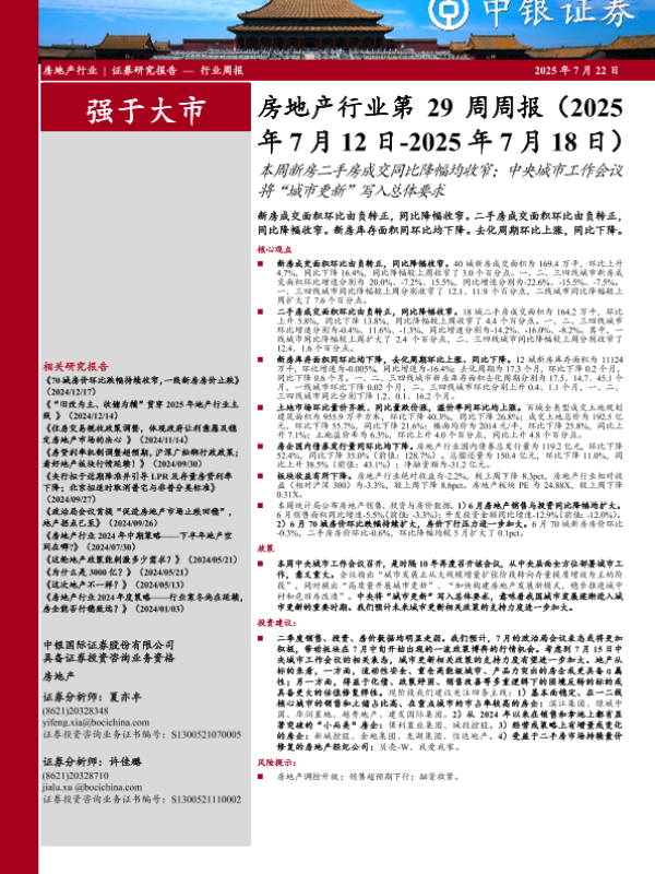 【中银证券】【20250722】房地产行业第29周周报-27页 证券期货研究报告