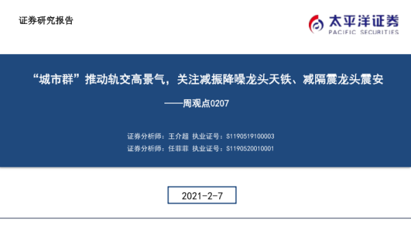 【太平洋证券】【20210207】建筑周观点:“城市群”推动轨交高景气,关注减振降噪龙头天铁、减隔震龙头震安-27页 行业研究