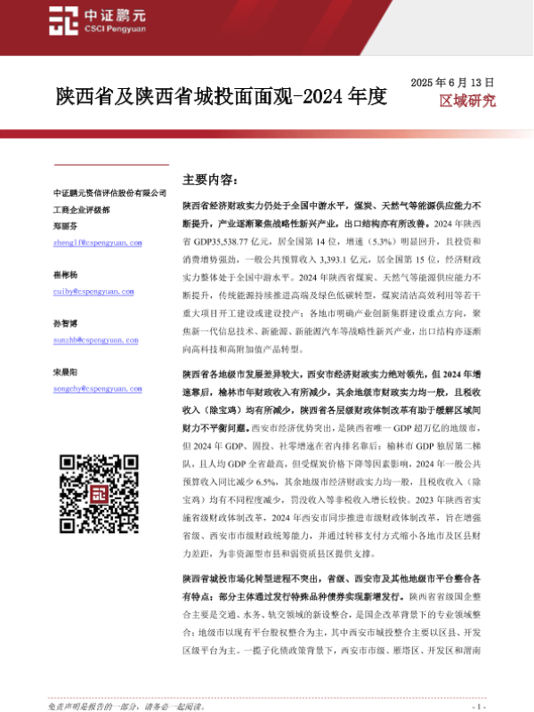 【中证鹏元】【2024】2024年度陕西省及陕西省城投面面观-24页 行业研究