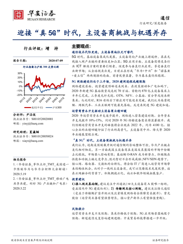 【华安证券】【20200709】迎接“真5G”时代,主设备商挑战与机遇并存-21页 行业研究