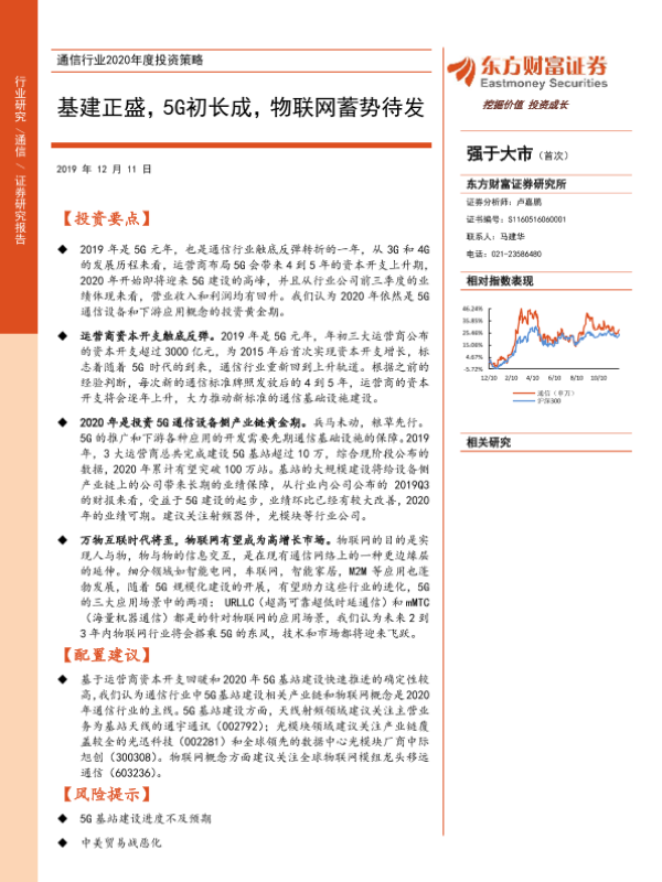 【东方财富证券】【20191211】通信行业2020年度投资策略:基建正盛,5G初长成,物联网蓄势待发-28页 行业研究