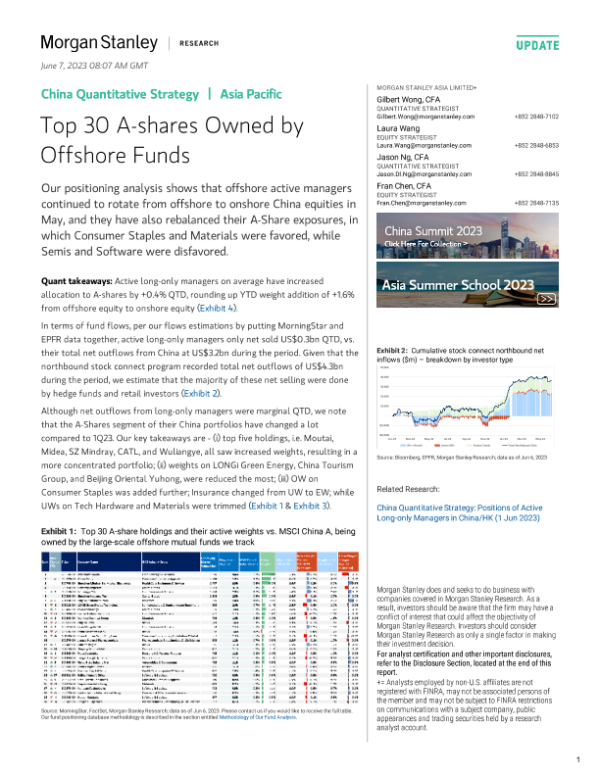 【Morgan Stanley】【20230607】China Quantitative Strategy Top 30 A-shares Owned by Offshore Funds-7页 行业研究