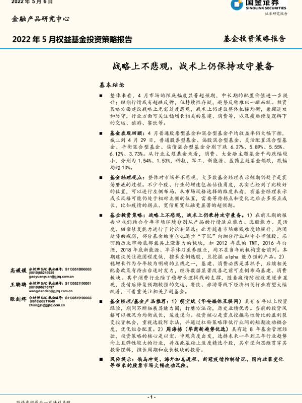 【国金证券】【20220506】2022年5月权益基金投资策略报告-20页 行业研究