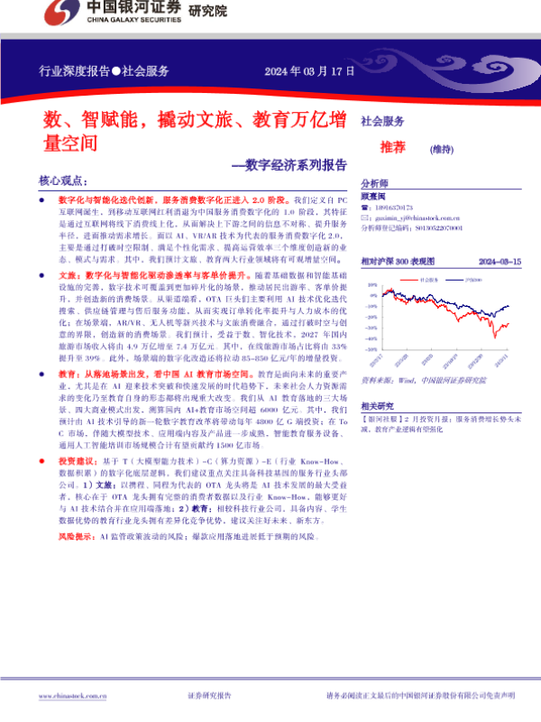 【银河证券】【20240317】社会服务行业数字经济系列报告:数、智赋能,撬动文旅、教育万亿增量空间-21页 行业研究