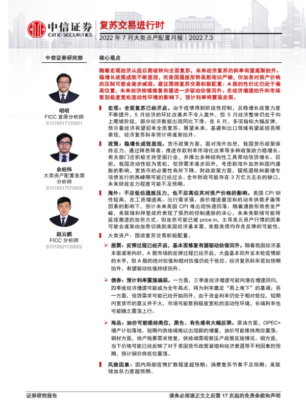 【中信证券】【20220703】2022年7月大类资产配置月报:复苏交易进行时-18页 行业研究