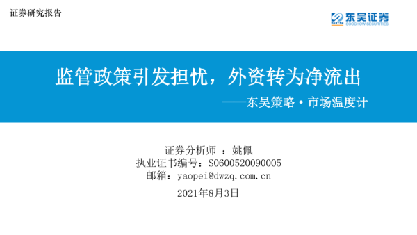 【东吴证券】【20210803】东吴策略·市场温度计:监管政策引发担忧,外资转为净流出-26页 行业研究