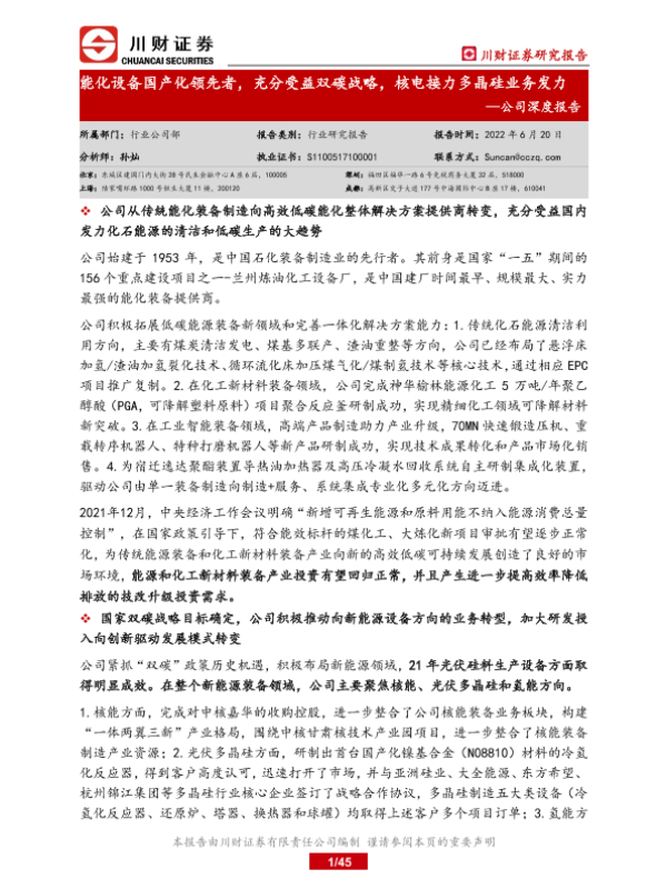 【川财证券】【20220620】兰石重装公司深度报告:能化设备国产化领先者,充分受益双碳战略,核电接力多晶硅业务发力-45页 公司研究