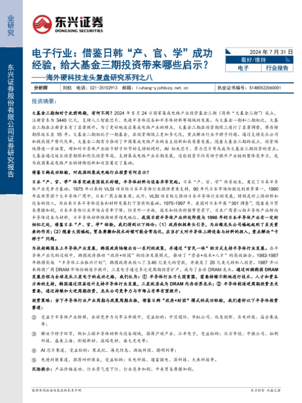 【东兴证券】【20240731】电子行业海外硬科技龙头复盘研究系列之八:借鉴日韩“产、官、学”成功经验,给大基金三期投资带来哪些启示?-12页 行业研究