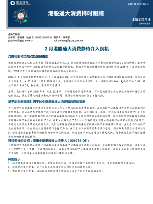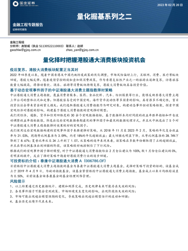 【国金证券】【20230220】量化掘基系列之二:量化择时把握港股通大消费板块投资机会-15页 行业研究