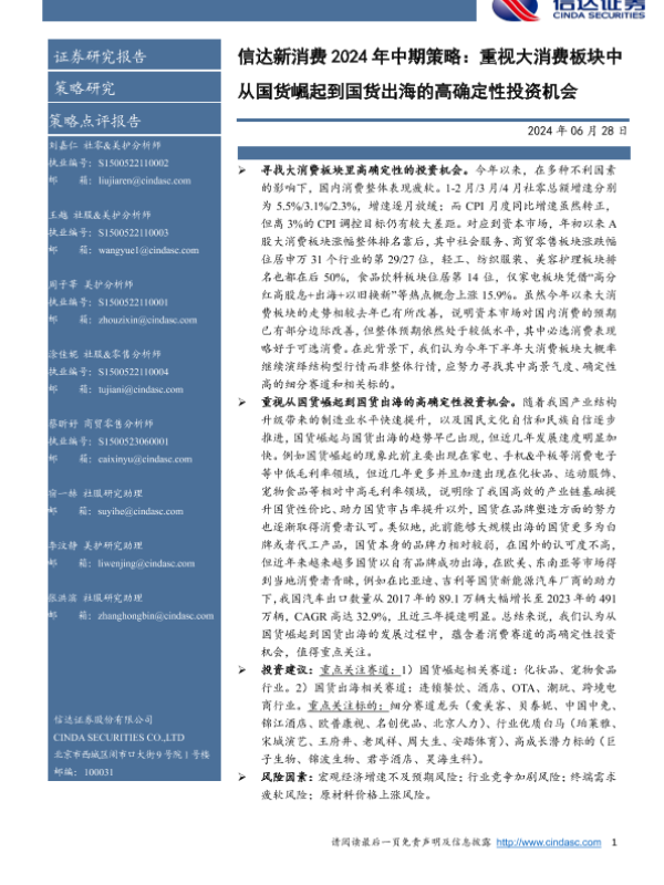 【信达证券】【20240628】信达新消费 2024年中期策略:重视大消费板块中从国货崛起到国货出海的高确定性投资机会-37页 行业研究