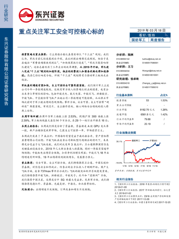 【东兴证券】【20190318】国防军工:重点关注军工安全可控核心标的-21页 行业研究