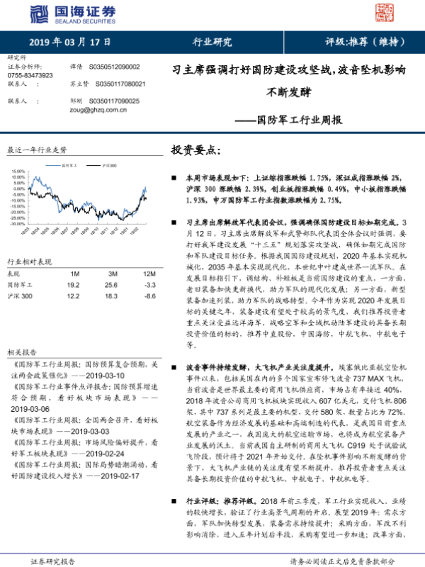 【国海证券】【20190317】国防军工行业周报:习主席强调打好国防建设攻坚战,波音坠机影响不断发酵-14页 行业研究
