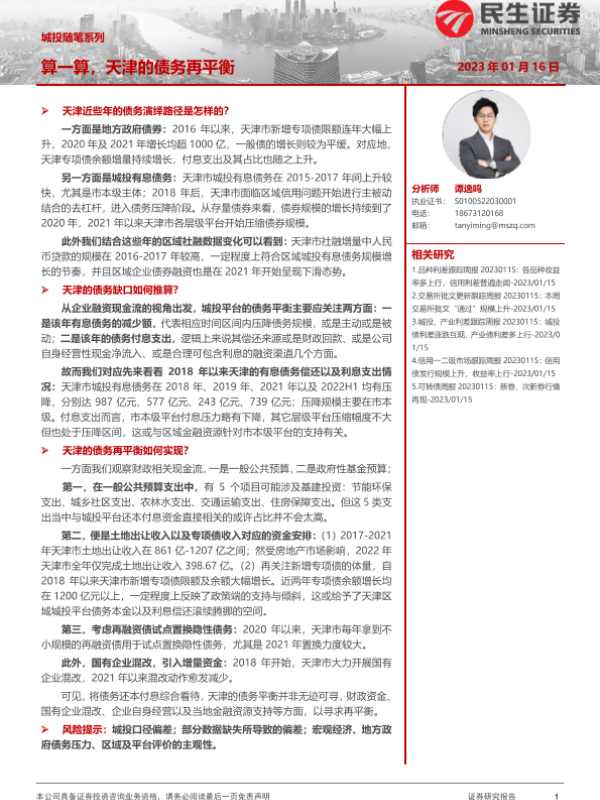 【民生证券】【20230116】城投随笔系列:算一算,天津的债务再平衡-15页 行业研究