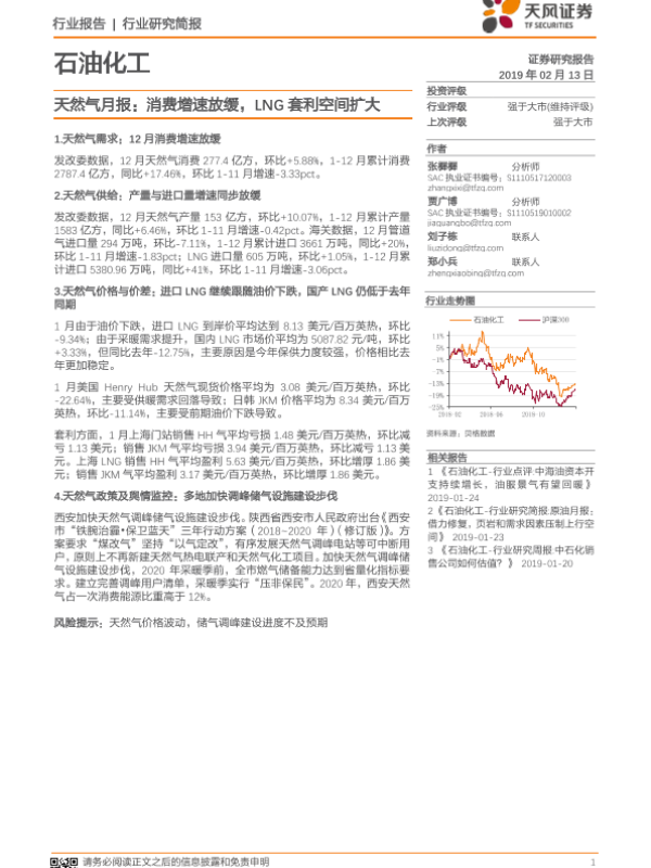 【天风证券】【20190213】天然气月报:消费增速放缓,LNG套利空间扩大-6页 行业研究
