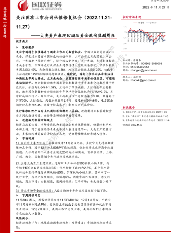 【国联证券】【20221127】大类资产表现回顾及资金流向监测周报:关注国有上市公司估值修复机会-18页 行业研究