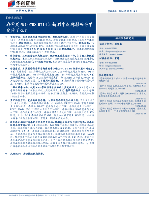 【华创证券】【20240714】债券:新利率走廊影响存单定价了么?-13页 行业研究