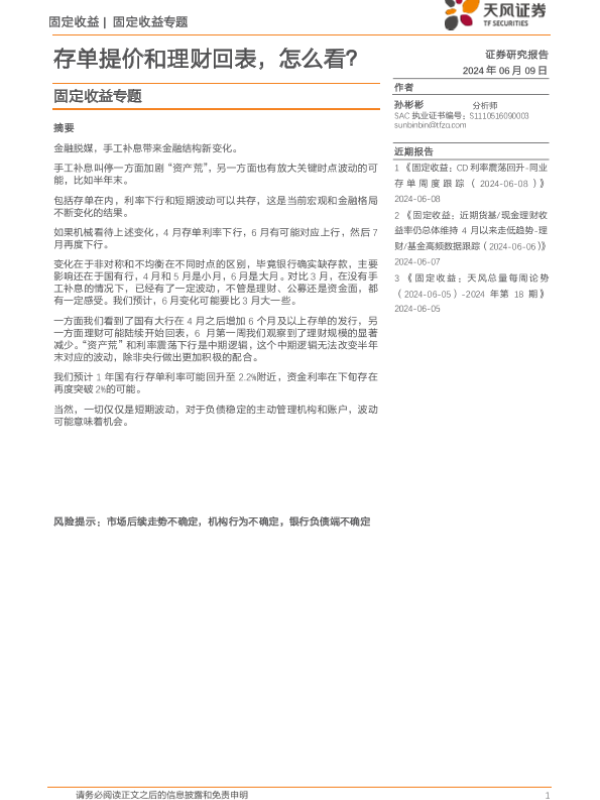 【天风证券】【20240609】固定收益专题:存单提价和理财回表,怎么看?-11页 行业研究