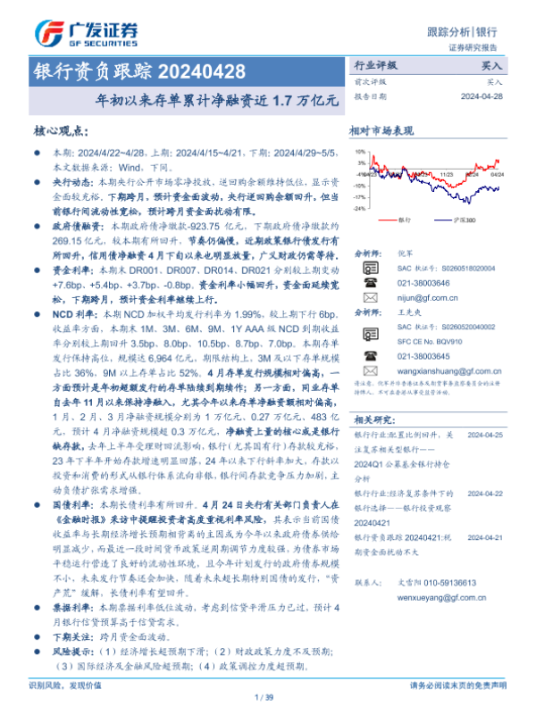 【广发证券】【20240428】银行业资负跟踪:年初以来存单累计净融资近1.7万亿元-39页 行业研究