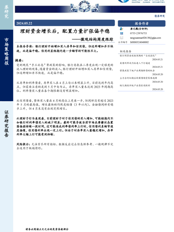 【国泰君安证券】【20240522】理财资金增长后,配置力量扩张偏平稳-14页 行业研究