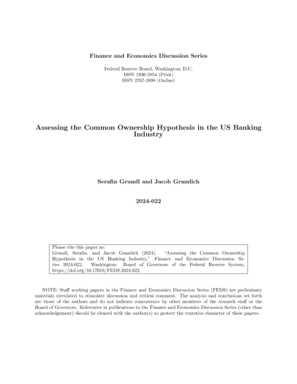 【Board of Governors of the Federal Reserve System】【202404】Assessing the Common Ownership Hypothesis in the US Banking Industry-41页 行业研究