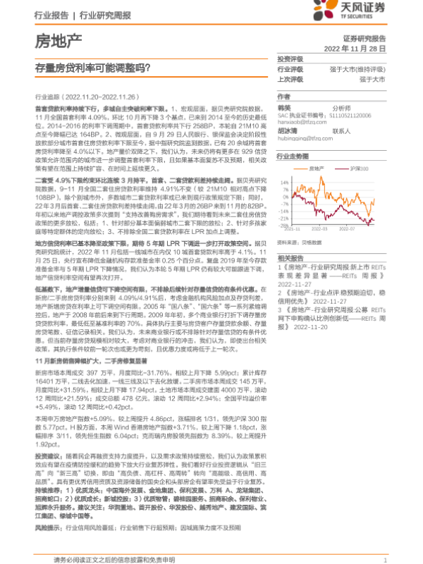 【天风证券】【20221128】房地产行业研究周报:存量房贷利率可能调整吗?-18页 行业研究