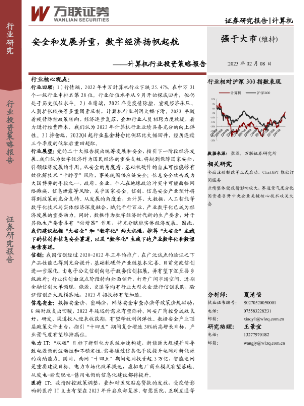 【万联证券】【20230208】计算机行业投资策略报告:安全和发展并重,数字经济扬帆起航-39页 行业研究