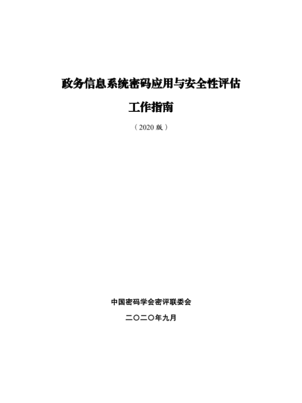 【中国密码学会密评联委会】【20200901】政务信息系统密码应用与安全性评估工作指南(2020 版)-66页 指南