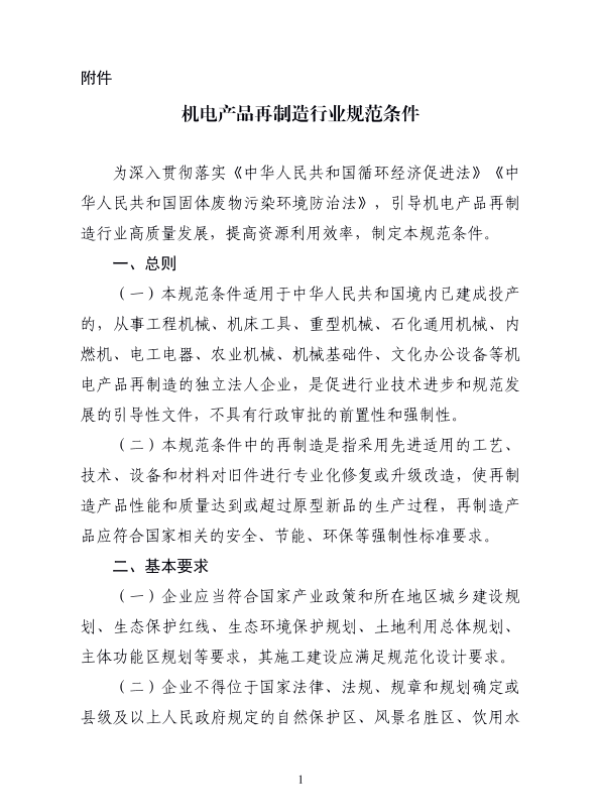 【工业和信息化部】【2023】机电产品再制造行业规范条件-25页 政策文件