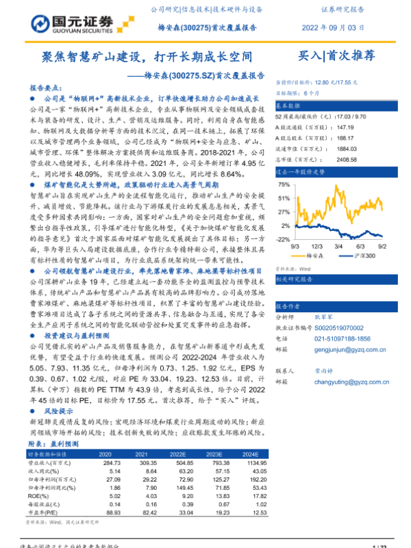 【国元证券】【20220903】聚焦智慧矿山建设,打开长期成长空间——梅安森(300275.SZ)首次覆盖报告-23页 行业研究