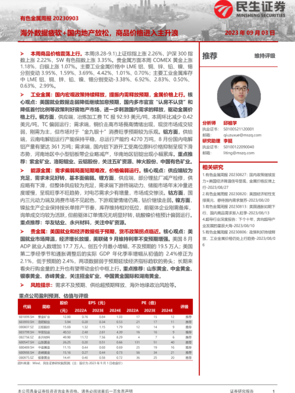 【民生证券】【20230903】20230903-民生证券-有色金属周报:海外数据疲软+国内地产放松,商品价格进入主升浪-27页 行业研究