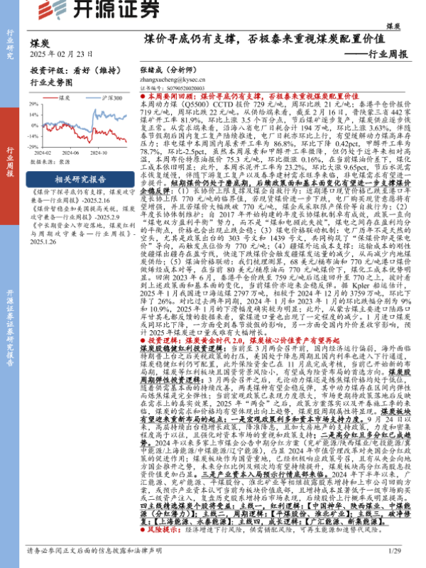 【开源证券】【20250223】煤价寻底仍有支撑,否极泰来重视煤炭配置价值行业周报-29页 行业研究