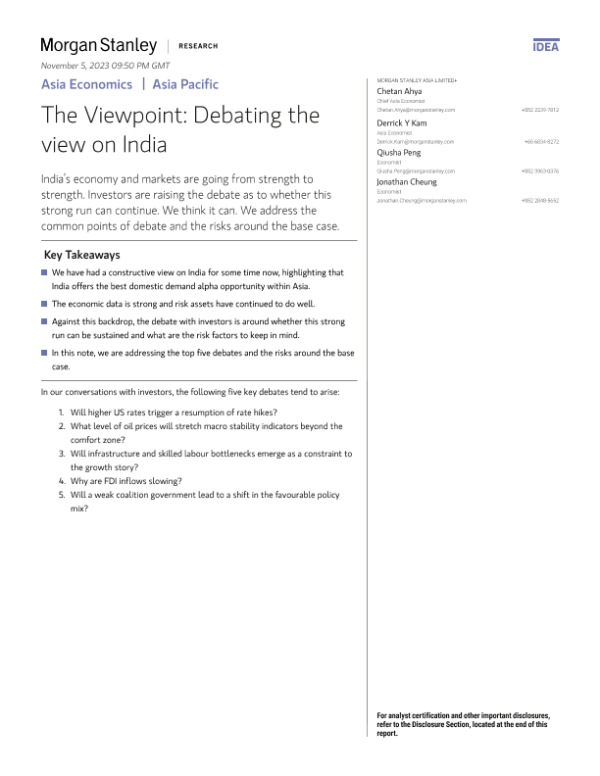 【Morgan Stanley】【20231008】The Viewpoint Debating the view on India-18页 行业研究